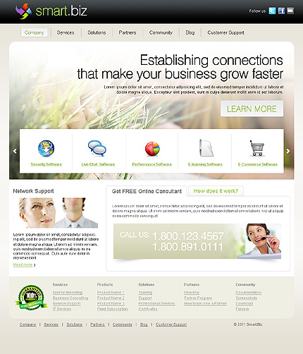 Dostosowanie strony www:W ramach usługi domyślne logo szablonu zostanie zastąpione Twoją nazwą lub zostanie wstawione logo dostarczone w pliku PSD lub AI. Nazwy przycisków menu nawigacyjnego strony zostaną zastąpione wybranymi przez Ciebie nazwami podstron. Wymienione zostaną teksty, zdjęcia i linki strony głównej oraz do 6 dowolnych podstron serwisu. Nie będą wymieniane schematy kolorystyczne oraz układ strony. Strona zostanie zainstalowana na wskazanym serwerze bez systemu zarządzania treścią CMS. System CMS należy zamówić oddzielnie.