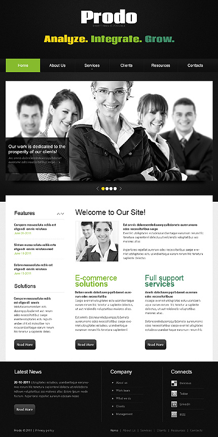 Dostosowanie strony www:W ramach usługi domyślne logo szablonu zostanie zastąpione Twoją nazwą lub zostanie wstawione logo dostarczone w pliku PSD lub AI. Nazwy przycisków menu nawigacyjnego strony zostaną zastąpione wybranymi przez Ciebie nazwami podstron. Wymienione zostaną teksty, zdjęcia i linki strony głównej oraz do 6 dowolnych podstron serwisu. Nie będą wymieniane schematy kolorystyczne oraz układ strony. Strona zostanie zainstalowana na wskazanym serwerze bez systemu zarządzania treścią CMS. System CMS należy zamówić oddzielnie.