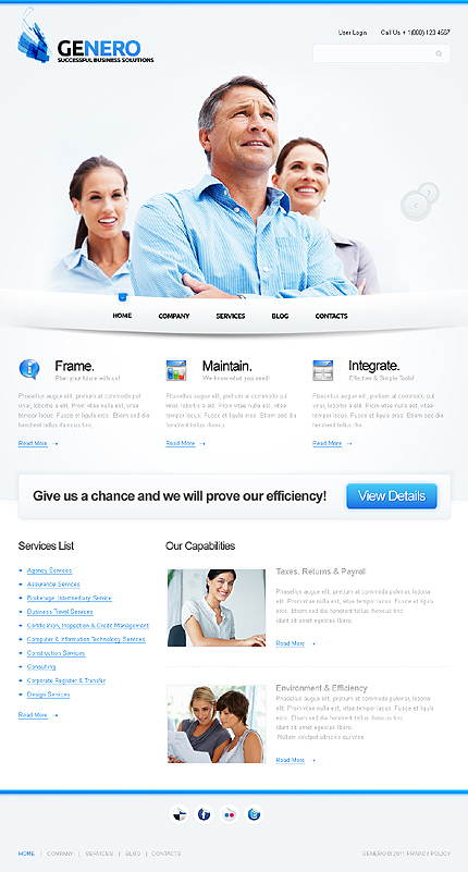 Dostosowanie strony www:W ramach usługi domyślne logo szablonu zostanie zastąpione Twoją nazwą lub zostanie wstawione logo dostarczone w pliku PSD lub AI. Nazwy przycisków menu nawigacyjnego strony zostaną zastąpione wybranymi przez Ciebie nazwami podstron. Wymienione zostaną teksty, zdjęcia i linki strony głównej oraz do 6 dowolnych podstron serwisu. Nie będą wymieniane schematy kolorystyczne oraz układ strony. Strona zostanie zainstalowana na wskazanym serwerze bez systemu zarządzania treścią CMS. System CMS należy zamówić oddzielnie.