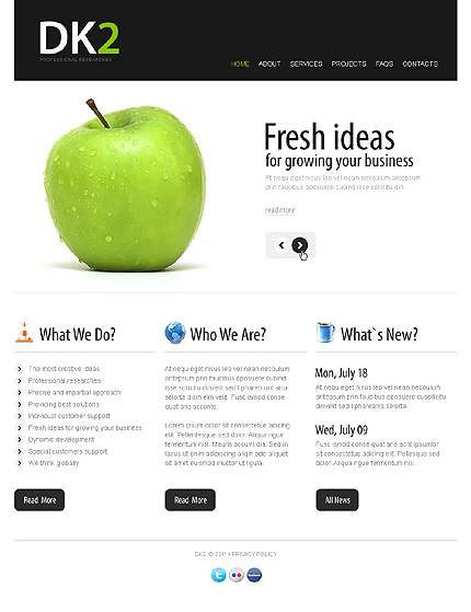 Dostosowanie strony www:W ramach usługi domyślne logo szablonu zostanie zastąpione Twoją nazwą lub zostanie wstawione logo dostarczone w pliku PSD lub AI. Nazwy przycisków menu nawigacyjnego strony zostaną zastąpione wybranymi przez Ciebie nazwami podstron. Wymienione zostaną teksty, zdjęcia i linki strony głównej oraz do 6 dowolnych podstron serwisu. Nie będą wymieniane schematy kolorystyczne oraz układ strony. Strona zostanie zainstalowana na wskazanym serwerze bez systemu zarządzania treścią CMS. System CMS należy zamówić oddzielnie.