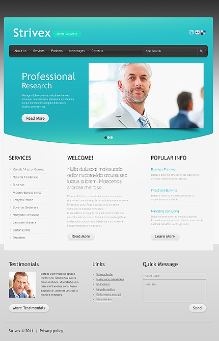 Dostosowanie strony www:W ramach usługi domyślne logo szablonu zostanie zastąpione Twoją nazwą lub zostanie wstawione logo dostarczone w pliku PSD lub AI. Nazwy przycisków menu nawigacyjnego strony zostaną zastąpione wybranymi przez Ciebie nazwami podstron. Wymienione zostaną teksty, zdjęcia i linki strony głównej oraz do 6 dowolnych podstron serwisu. Nie będą wymieniane schematy kolorystyczne oraz układ strony. Strona zostanie zainstalowana na wskazanym serwerze bez systemu zarządzania treścią CMS. System CMS należy zamówić oddzielnie.