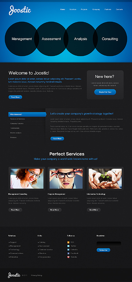 Dostosowanie strony www:W ramach usługi domyślne logo szablonu zostanie zastąpione Twoją nazwą lub zostanie wstawione logo dostarczone w pliku PSD lub AI. Nazwy przycisków menu nawigacyjnego strony zostaną zastąpione wybranymi przez Ciebie nazwami podstron. Wymienione zostaną teksty, zdjęcia i linki strony głównej oraz do 6 dowolnych podstron serwisu. Nie będą wymieniane schematy kolorystyczne oraz układ strony. Strona zostanie zainstalowana na wskazanym serwerze bez systemu zarządzania treścią CMS. System CMS należy zamówić oddzielnie.