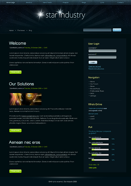 Dostosowanie strony www:W ramach usługi domyślne logo szablonu zostanie zastąpione Twoją nazwą lub zostanie wstawione logo dostarczone w pliku PSD lub AI. Nazwy przycisków menu nawigacyjnego strony zostaną zastąpione wybranymi przez Ciebie nazwami podstron. Wymienione zostaną teksty, zdjęcia i linki strony głównej oraz do 6 dowolnych podstron serwisu. Nie będą wymieniane schematy kolorystyczne oraz układ strony. Strona zostanie zainstalowana na wskazanym serwerze bez systemu zarządzania treścią CMS. System CMS należy zamówić oddzielnie.