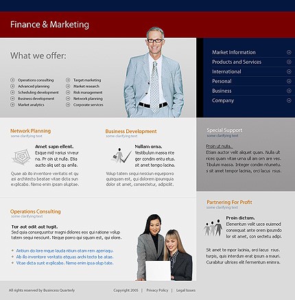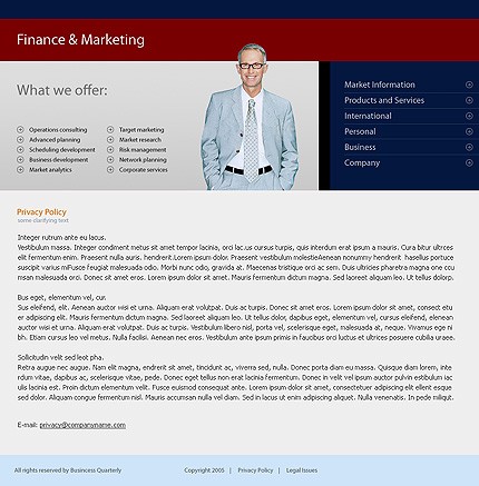 W ramach usługi domyślne logo szablonu zostanie zastąpione Twoją nazwą lub zostanie wstawione logo dostarczone w pliku PSD lub AI. Nazwy przycisków menu nawigacyjnego strony zostaną zastąpione wybranymi przez Ciebie nazwami podstron. Wymienione zostaną teksty, zdjęcia i linki strony głównej oraz do 6 dowolnych podstron serwisu. Nie będą wymieniane schematy kolorystyczne oraz układ strony. Strona zostanie zainstalowana na wskazanym serwerze bez systemu zarządzania treścią CMS. System CMS należy zamówić oddzielnie.