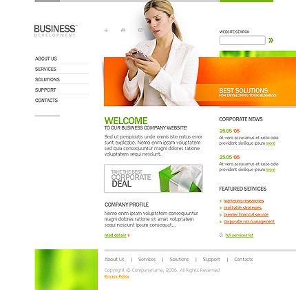 W ramach usługi domyślne logo szablonu zostanie zastąpione Twoją nazwą lub zostanie wstawione logo dostarczone w pliku PSD lub AI. Nazwy przycisków menu nawigacyjnego strony zostaną zastąpione wybranymi przez Ciebie nazwami podstron. Wymienione zostaną teksty, zdjęcia i linki strony głównej oraz do 6 dowolnych podstron serwisu. Nie będą wymieniane schematy kolorystyczne oraz układ strony. Strona zostanie zainstalowana na wskazanym serwerze bez systemu zarządzania treścią CMS. System CMS należy zamówić oddzielnie.