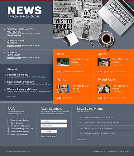 Dostosowanie strony www:W ramach usługi domyślne logo szablonu zostanie zastąpione Twoją nazwą lub zostanie wstawione logo dostarczone w pliku PSD lub AI. Nazwy przycisków menu nawigacyjnego strony zostaną zastąpione wybranymi przez Ciebie nazwami podstron. Wymienione zostaną teksty, zdjęcia i linki strony głównej oraz do 6 dowolnych podstron serwisu. Nie będą wymieniane schematy kolorystyczne oraz układ strony. Strona zostanie zainstalowana na wskazanym serwerze bez systemu zarządzania treścią CMS. System CMS należy zamówić oddzielnie.