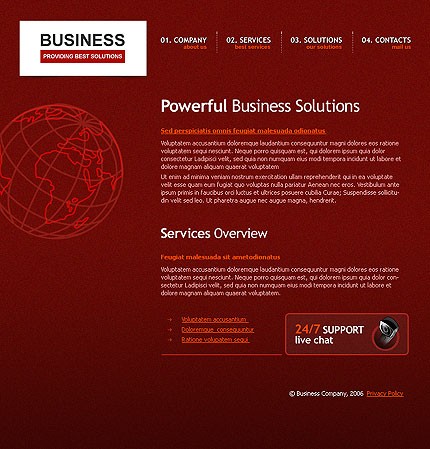 W ramach usługi domyślne logo szablonu zostanie zastąpione Twoją nazwą lub zostanie wstawione logo dostarczone w pliku PSD lub AI. Nazwy przycisków menu nawigacyjnego strony zostaną zastąpione wybranymi przez Ciebie nazwami podstron. Wymienione zostaną teksty, zdjęcia i linki strony głównej oraz do 6 dowolnych podstron serwisu. Nie będą wymieniane schematy kolorystyczne oraz układ strony. Strona zostanie zainstalowana na wskazanym serwerze bez systemu zarządzania treścią CMS. System CMS należy zamówić oddzielnie.