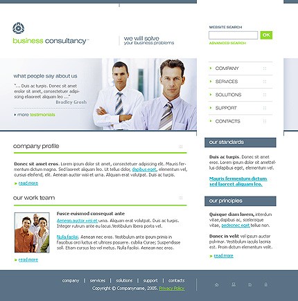 W ramach usługi domyślne logo szablonu zostanie zastąpione Twoją nazwą lub zostanie wstawione logo dostarczone w pliku PSD lub AI. Nazwy przycisków menu nawigacyjnego strony zostaną zastąpione wybranymi przez Ciebie nazwami podstron. Wymienione zostaną teksty, zdjęcia i linki strony głównej oraz do 6 dowolnych podstron serwisu. Nie będą wymieniane schematy kolorystyczne oraz układ strony. Strona zostanie zainstalowana na wskazanym serwerze bez systemu zarządzania treścią CMS. System CMS należy zamówić oddzielnie.